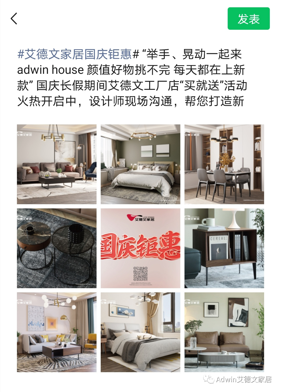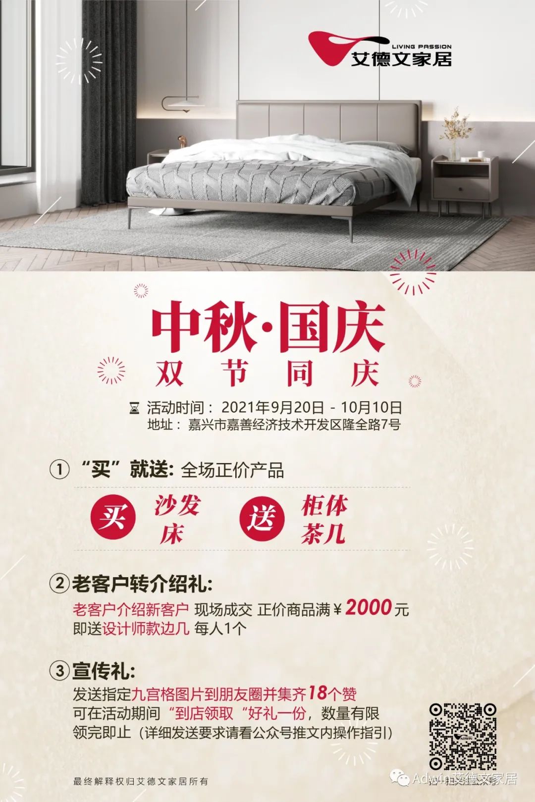 “ #艾德文家居國(guó)慶鉅惠# “舉手、晃動(dòng)一起來(lái) adwin house 顏值好物挑不完 每天都在上新款” 國(guó)慶長(zhǎng)假期間艾德文工廠店“買(mǎi)就送”活動(dòng)火熱開(kāi)啟中,設(shè)計(jì)師現(xiàn)場(chǎng)溝通,幫您打造新家,預(yù)約電話13484116213 ”