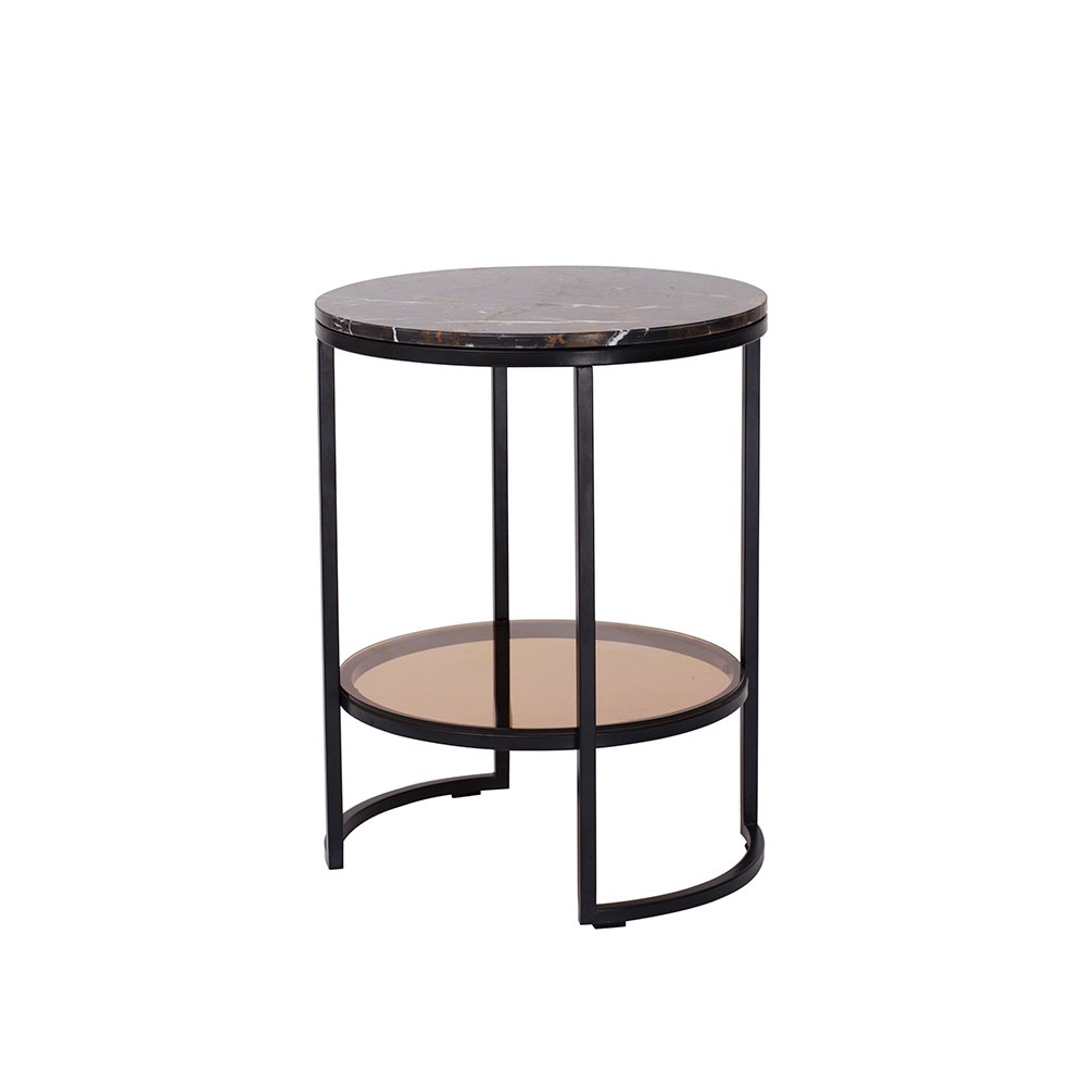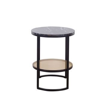 CT-565-黑金花大理石面板+茶色鋼化玻璃層板+黑啞光金工件